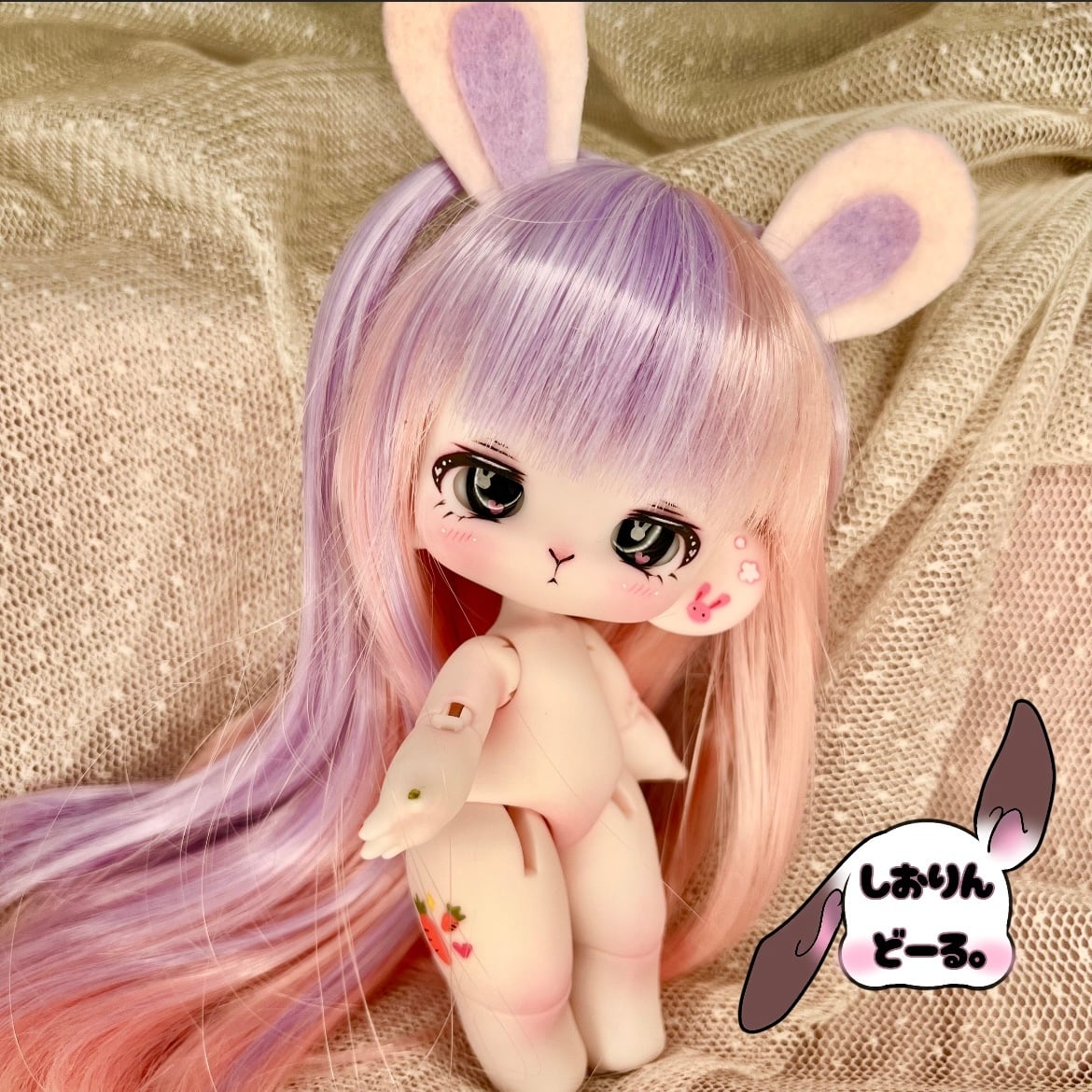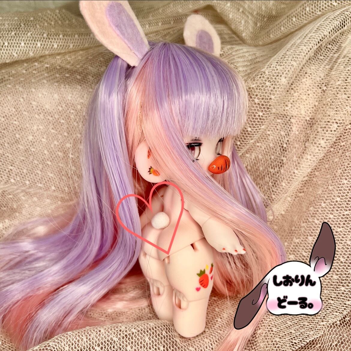 ドール本体、アイ 2ペア、ウィッグ、ウサ耳クリップヘアピン、尻尾、うさぎの小さなヘアピン、小さなにんじん
